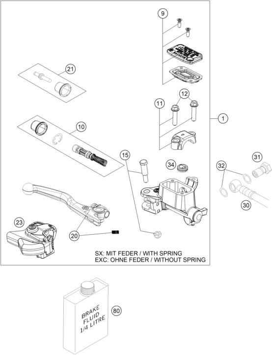 LEVIER FREIN + RESSORT SX/EXC 14
